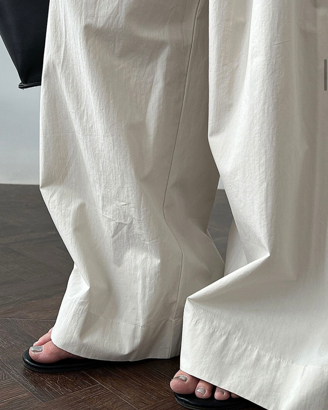 ゆったりとしたシルエットと軽やかなコットン素材が魅力のタックパンツ。