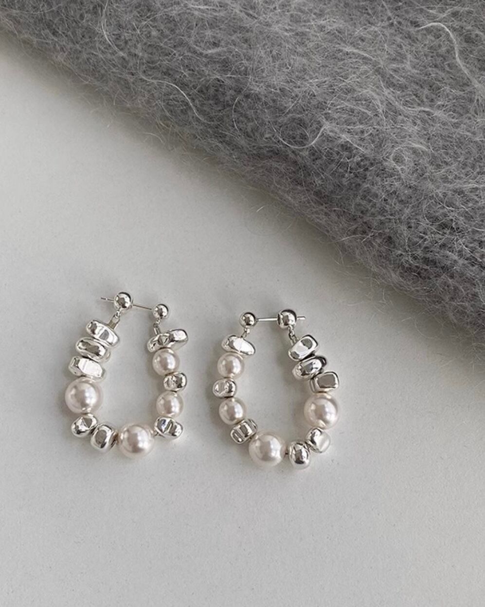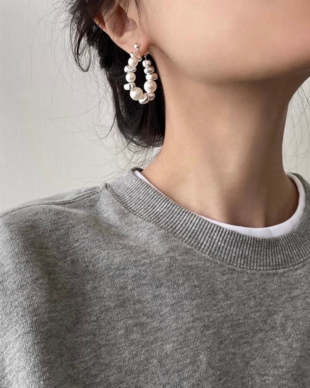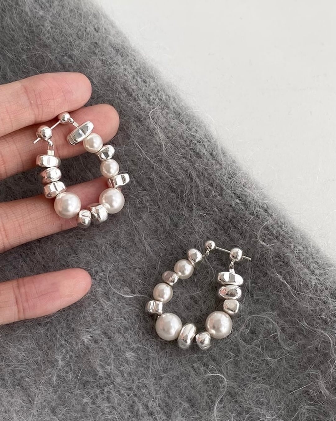 ころんとしたビーズとメタルパーツを組み合わせたモダンで存在感のあるフープピアス。