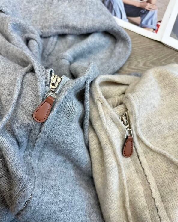 ふんわり柔らかなニット素材を使用したジップアップパーカー。