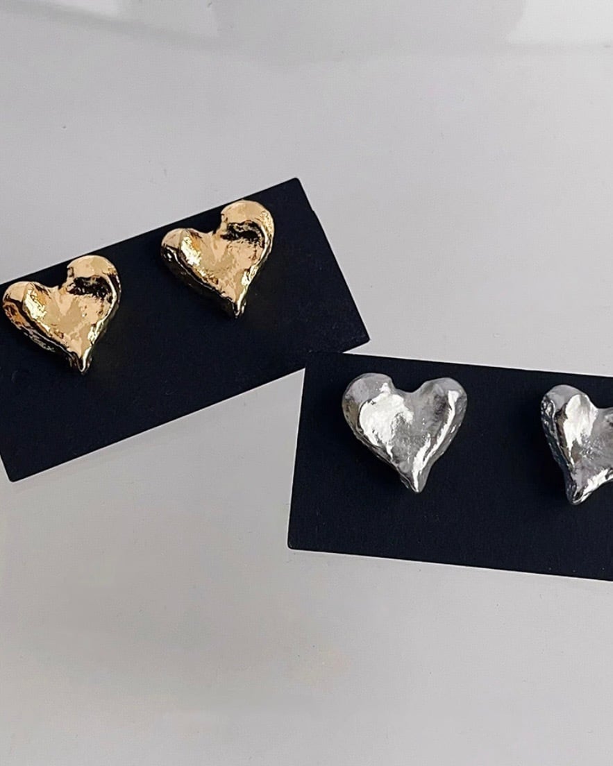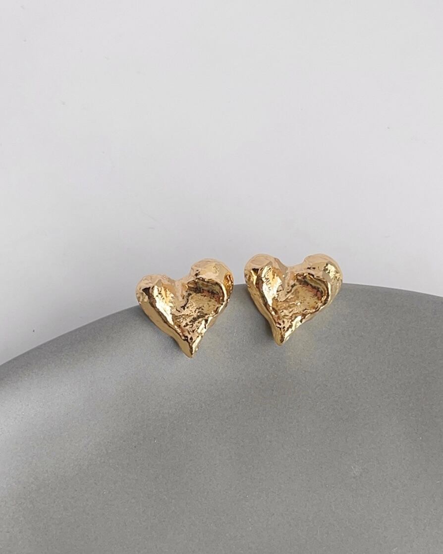 ぷっくりとした立体フォルムが可愛いハートピアス。